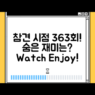 시청하는 것만으로도 느껴질 수 있는 소소한 기쁨, 전지적 참견 시점 363회에서 찾아보세요. 여러분의 이야기와 경험을 공유하는 것도 잊지 마세요!